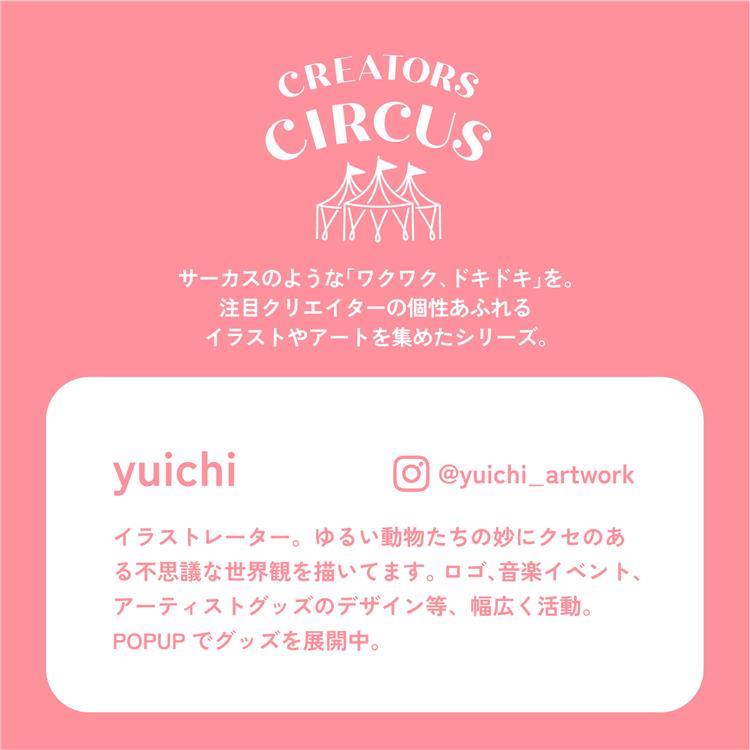 - yuichi:イラストレーター。ゆるい動物たちの妙にクセのある不思議な世界観を描いてます。ロゴ、音楽イベント、アーティストグッズのデザイン等、幅広く活動。POPUPでグッズを展開中。