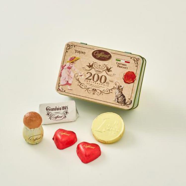 カファレル創業200周年のロゴと女の子と猫のイラストが可愛いデザイン缶に、人気の「ジャンドゥーヤビター」をアソートしました。