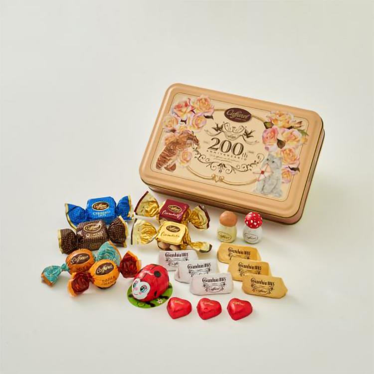 カファレルイラストの女の子とうさぎが手紙を交換しあうデザインの缶に定番の「ジャンドゥーヤ」などをアソートしました。