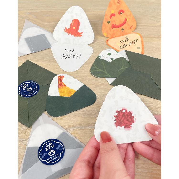 まるで“おむすび”みたいな「ふみむすび」は、おむすび型の可愛いメッセージカードです。