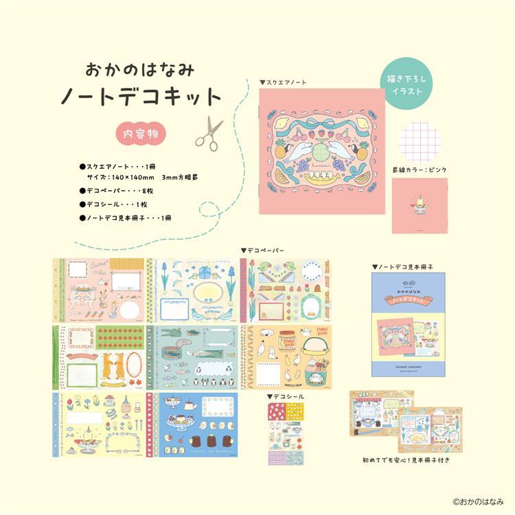 人気クリエイター おかのはなみさん のイラストがたっぷり入った、誰でもかわいくノートデコが楽しめる豪華な一式セット「ノートデコキット」。