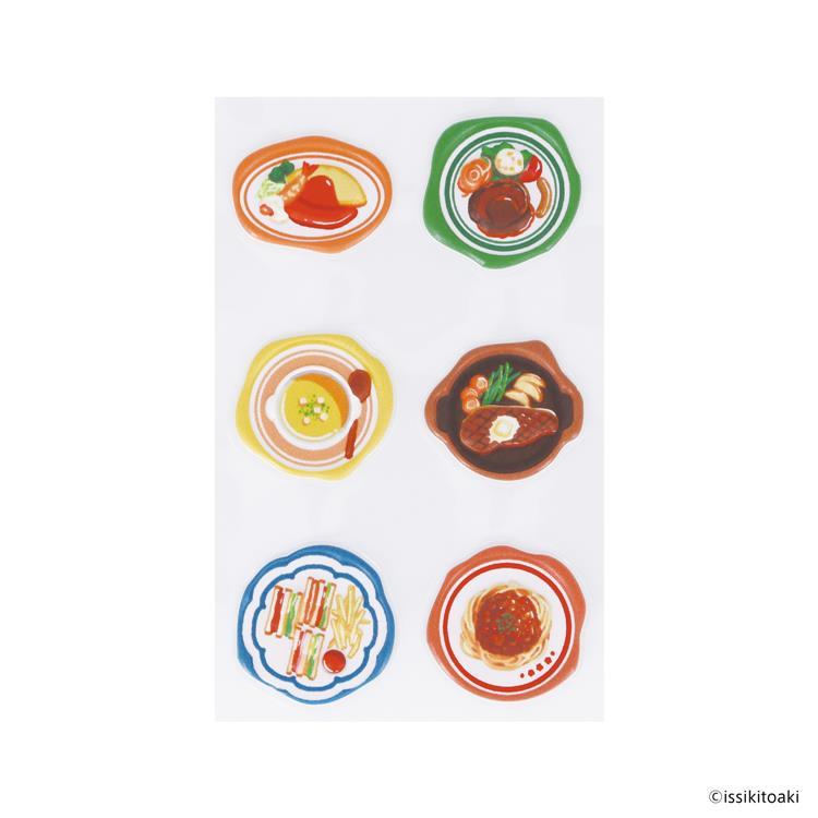 可愛くて美味しそうな料理のイラストがギュギュっと詰め込まれたシーリングスタンプ風のぷにぷに立体シール