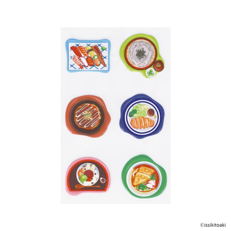可愛くて美味しそうな料理のイラストがギュギュっと詰め込まれたシーリングスタンプ風のぷにぷに立体シール