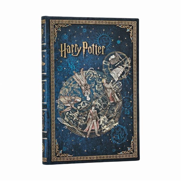 3人が過ごすホグワーツでの重要な一瞬を包み込むように神秘的な青と金を使った表紙デザインには、シリーズの愛すべきキャラクターとアイコン的モチーフが描かれ、このノート以上にハリー・ポッターの素晴らしい世界を完璧に表現しているものはないといえるでしょう。