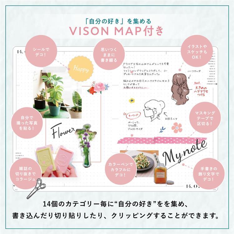 さらに、VISON MAPとして、自分の好きなものを切り貼りしたり書き込んだりできるノートページを収録しています。