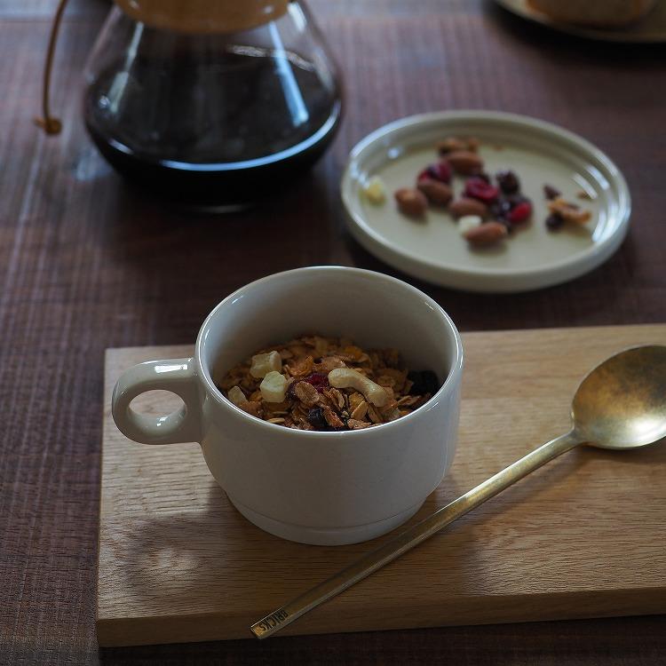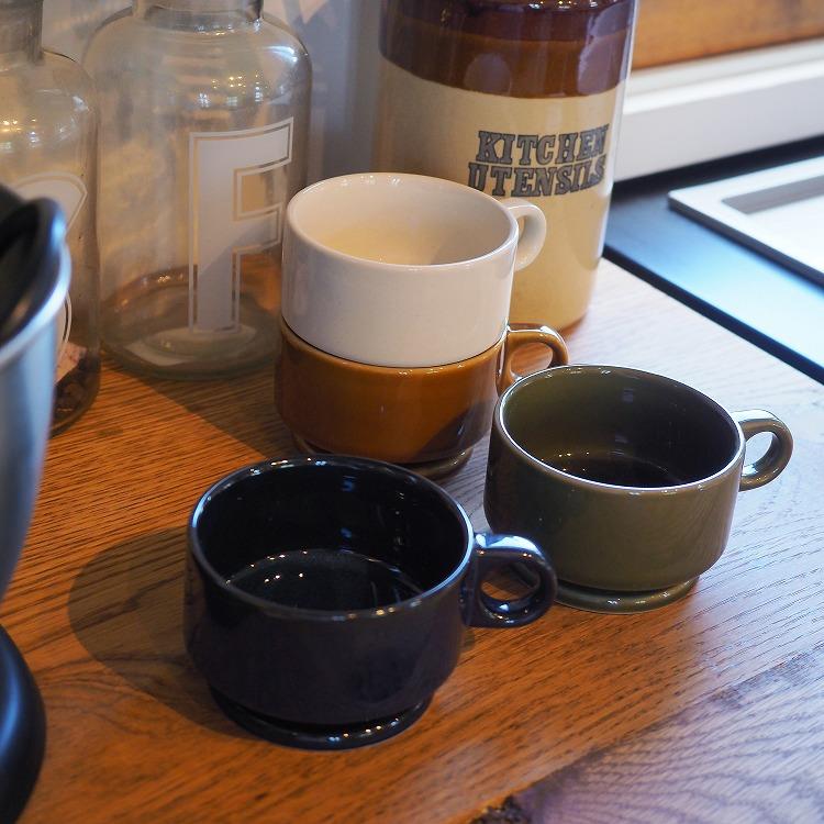 どこか懐かしさを感じさせる形状と色味が印象的で、どっしりとした安定感があり、重ねて収納ができる機能性も備わっています。