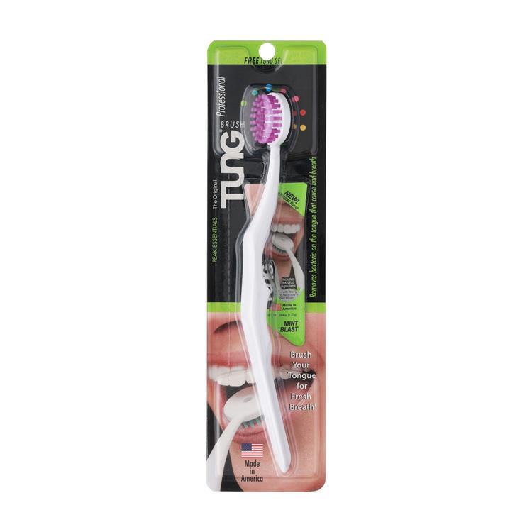 人間工学に基づき、米国ピーク社が独自開発した舌磨き用ブラシで、口臭の原因となる舌の表面汚れを取り、口臭を予防。