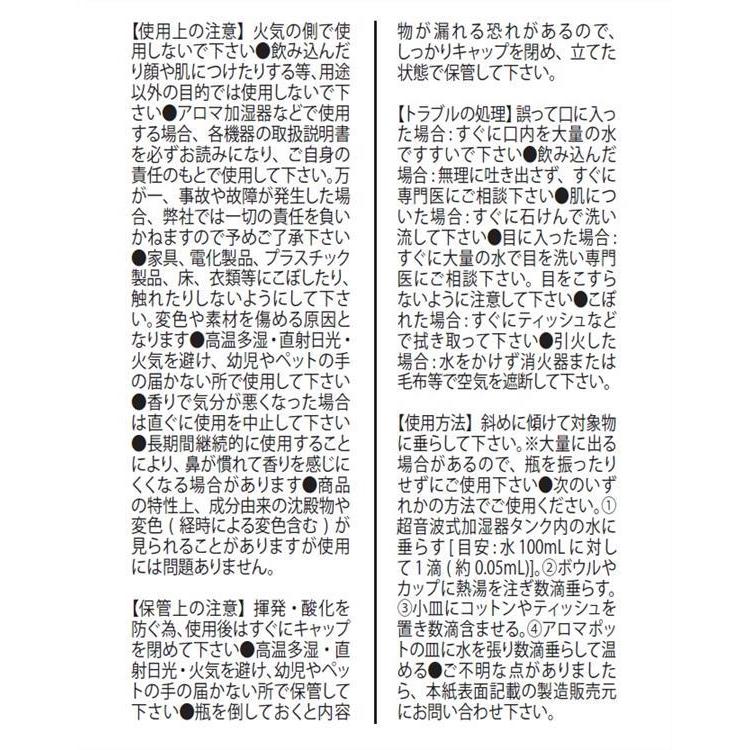 ・アロマ加湿器などで使用する場合、各機器の取扱説明書を必ずお読みになり、ご自身の責任のもとで使用して下さい。