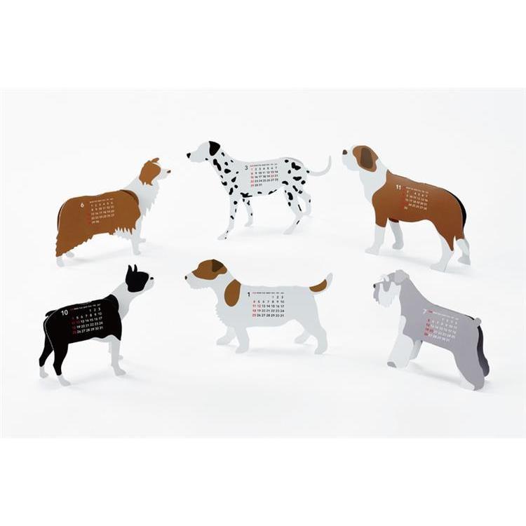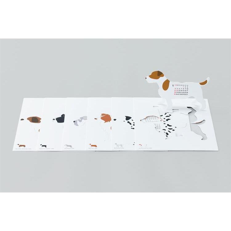 6枚のシートがセットされており、パーツを取り外して組み立てると、犬のかたちをした2カ月表記のカレンダーになります。