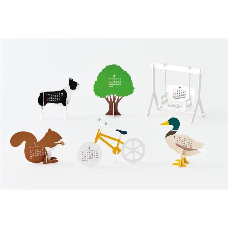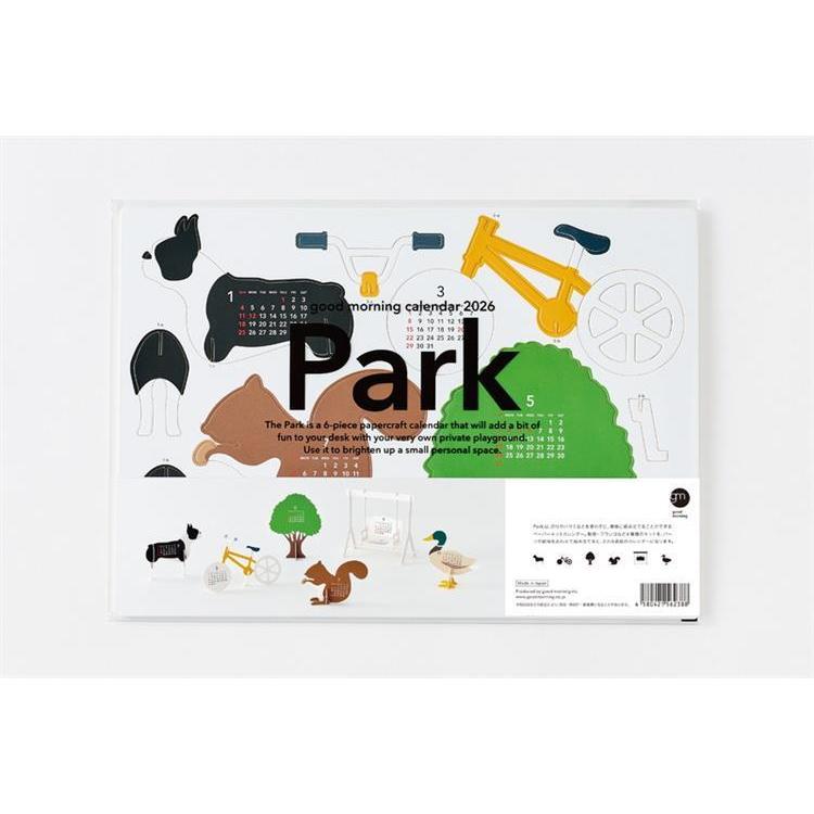 good morning calender 2026「Park」は、のリやハサミなどを使わずに、簡単に組み立てることができるペーパーキットカレンダーです。