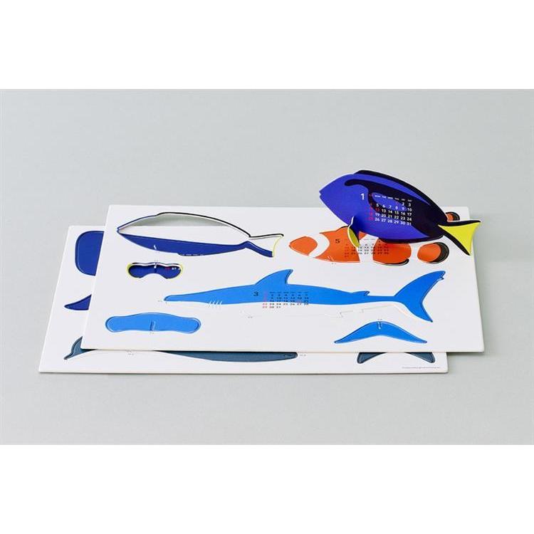 6種類の海の生物がセットされており、パーツの記号を合わせて組み立てると、2カ月表記のカレンダーになります。