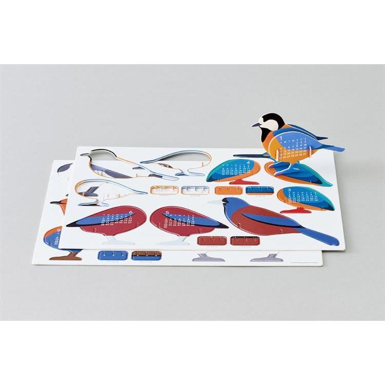 6種類の鳥がセットされており、パーツを台紙から取り外して鳥を組み立てると、2カ月表記のカレンダーになります。