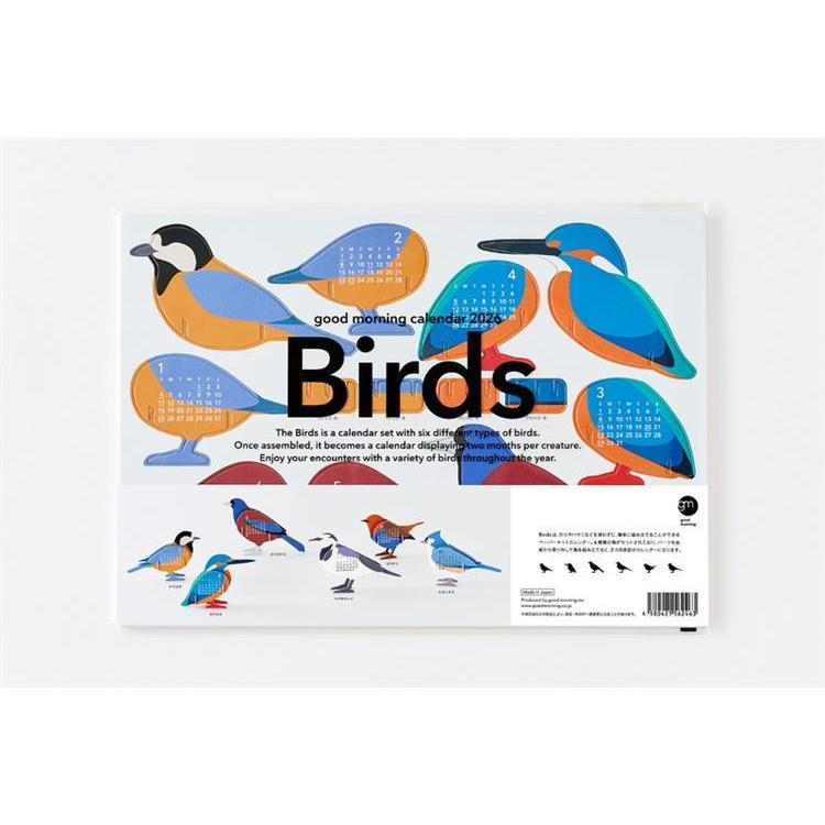 good morning calender 2026「Birds」は、のりやハサミなどを使わずに、簡単に組み立てることができるペーパーキットカレンダーです。
