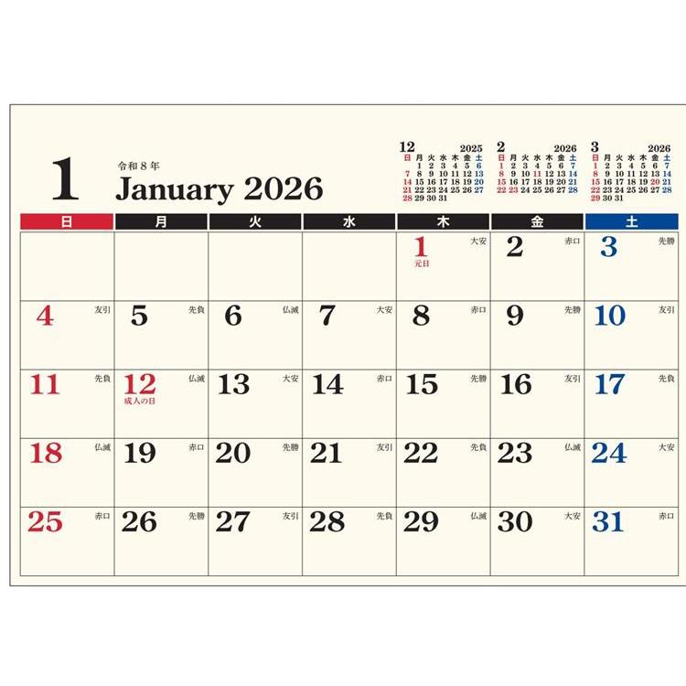 大きな数字でくっきりと見やすい2026年版卓上数字カレンダー。
