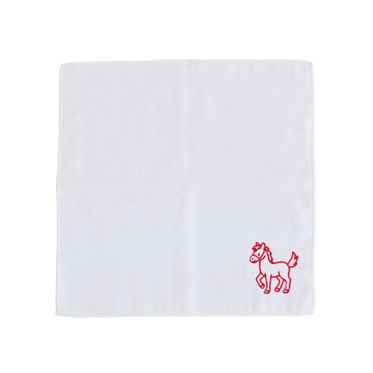 2026年の干支「午」のかわいらしい刺繍が入った、ミニタオルです。