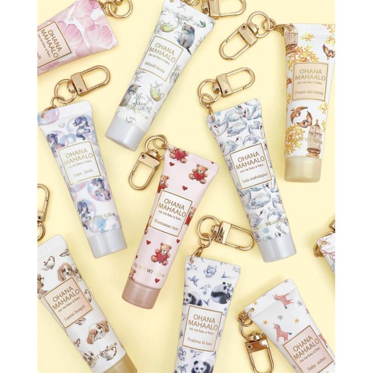 バッグに付けられるキーホルダー付きなので、外出先でもサッと保湿ケアができ、お気に入りの香りを気軽にまとえます。