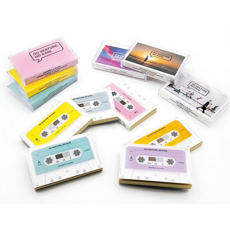 レトロな魅力が光る、ユニークなカセットテープ型ノートです。