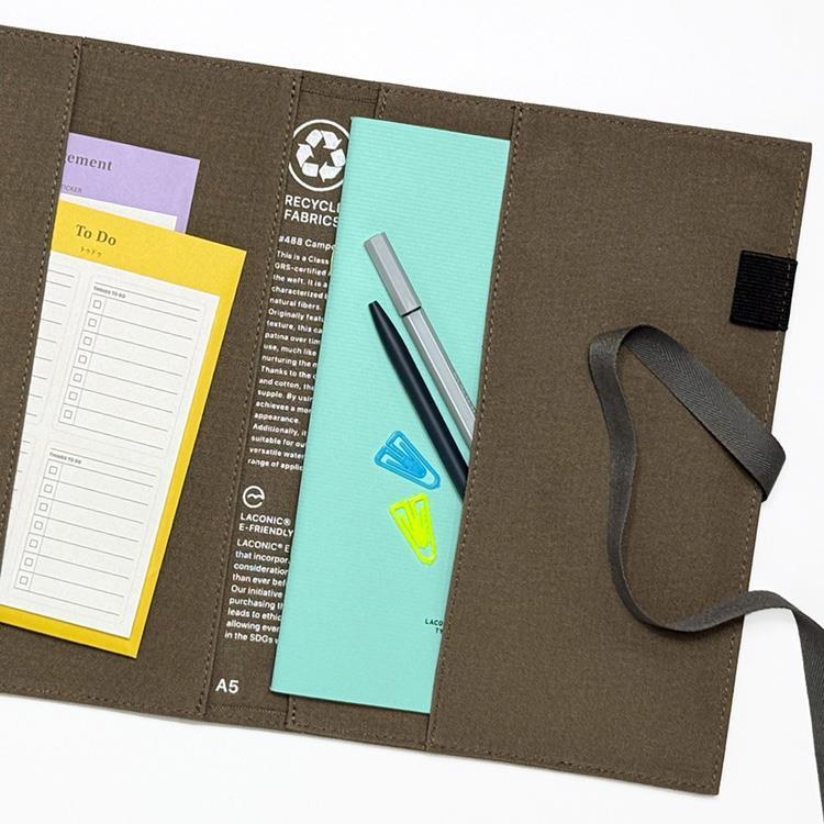 芯材が入っていないので、手帳やノートのほか、小物などの立体的なアイテムも優しく包み込みます。