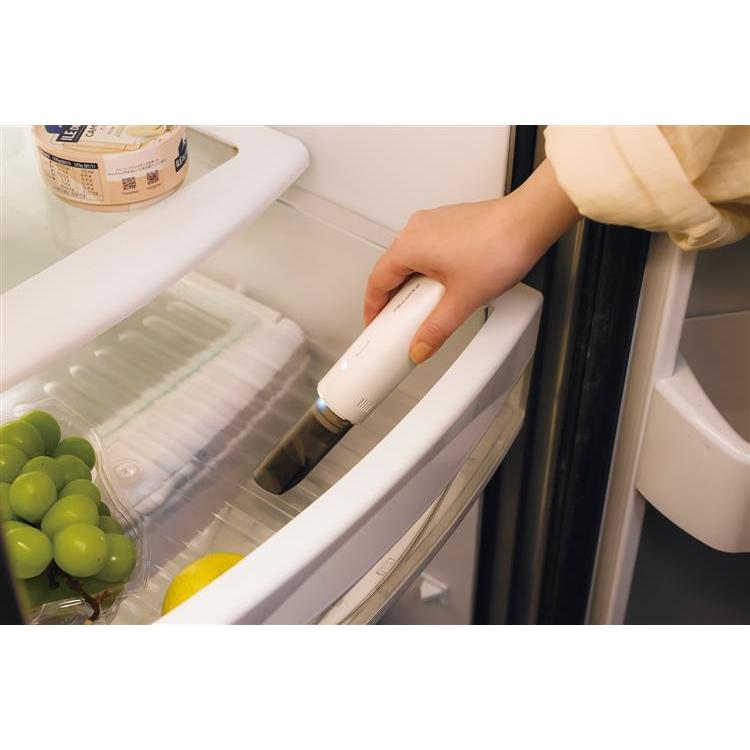 200gと軽量ながら、約2000Pa(満充電時)とパワフルな吸引力。ホコリや食べかす、冷蔵庫の隅や髪の毛を吸うには十分な吸引力です。