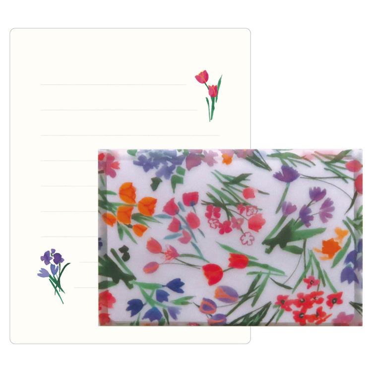 花柄の透け感が美しい、ちょっとした気持ちを伝えたいときに便利なミニレターセットです。