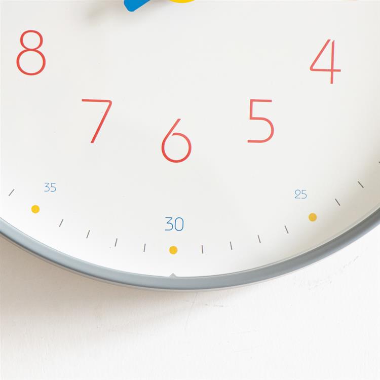 分表記があり知育時計としての機能をもたせつつ遊び心のあるデザインとなっています。