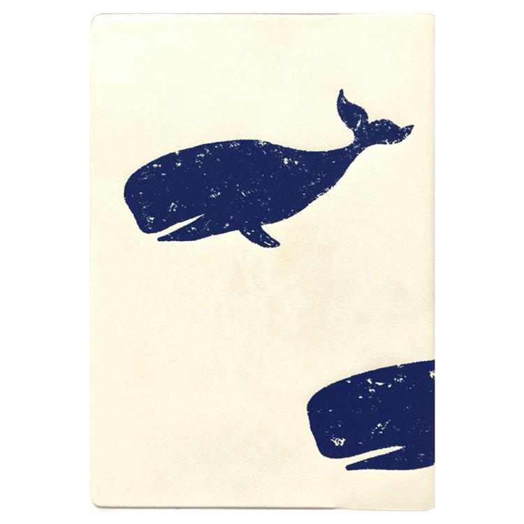 版画のような粗めのタッチをシルク印刷で表現しました。クジラが悠々と泳ぐ海を連想させる青と波の白。