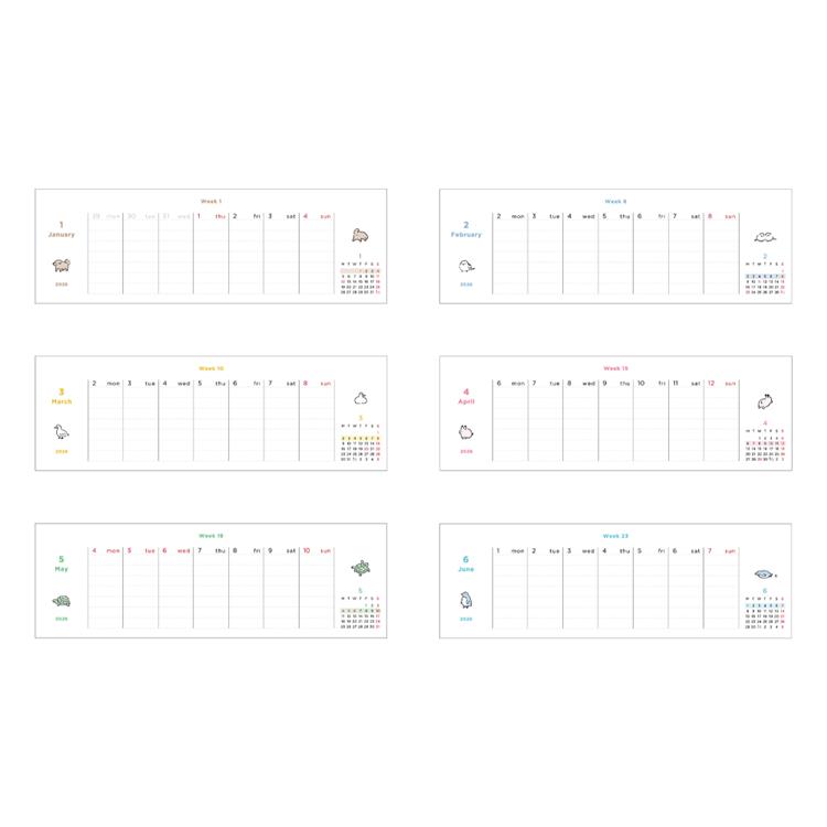 小さな動物たちが53週違うポーズをしているので、週初めにめくるのが楽しくなりそう!