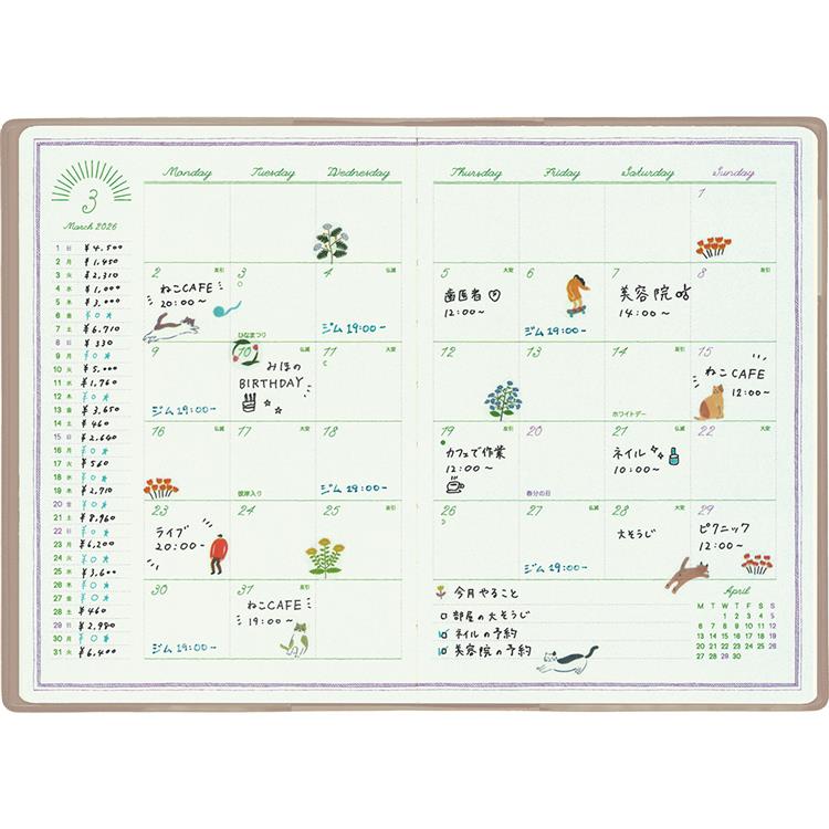 たっぷり書き込めるB6サイズのフルカラー月間ダイアリー