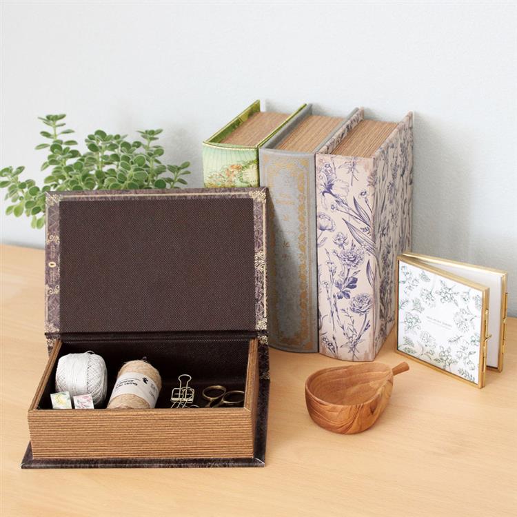 ヴィンテージ風の印刷が施された、まるで年代物の洋書のようなブック型収納ボックスです。