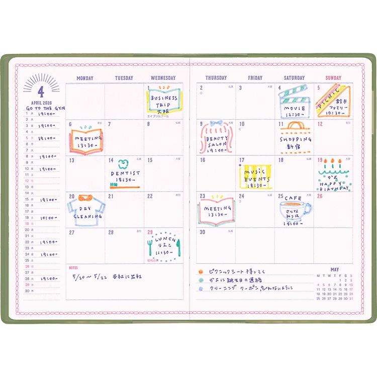 たっぷり書き込めるB6サイズのフルカラー月間ダイアリー