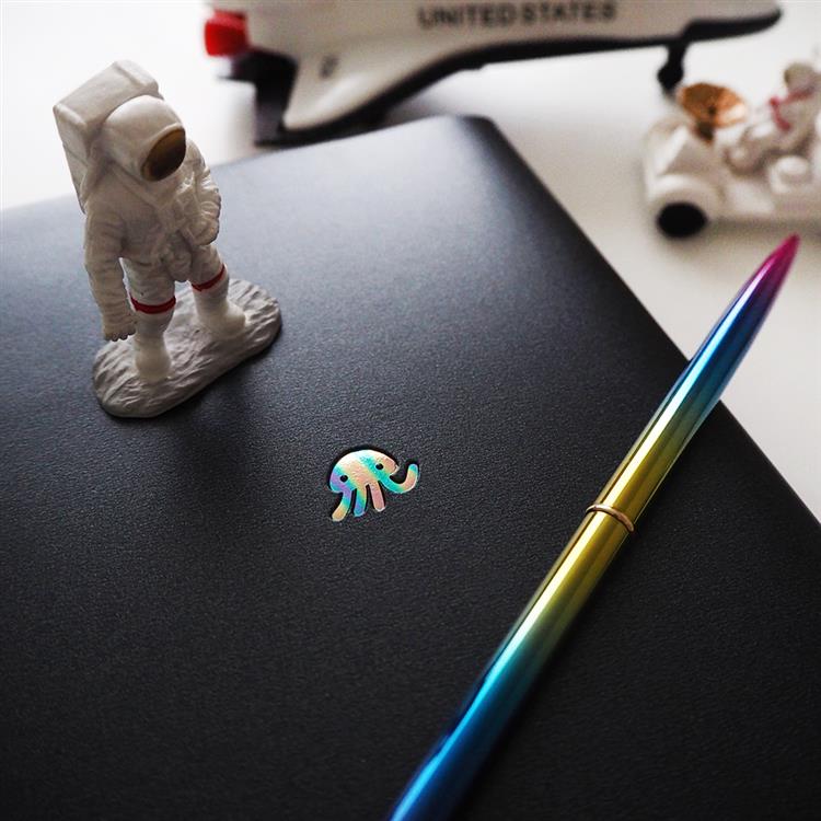 レインボー箔で押された、宇宙飛行士と探索中に遭遇したクラゲのような宇宙人が可愛いデザイン。
