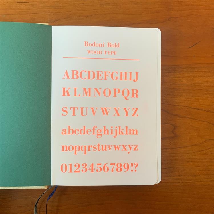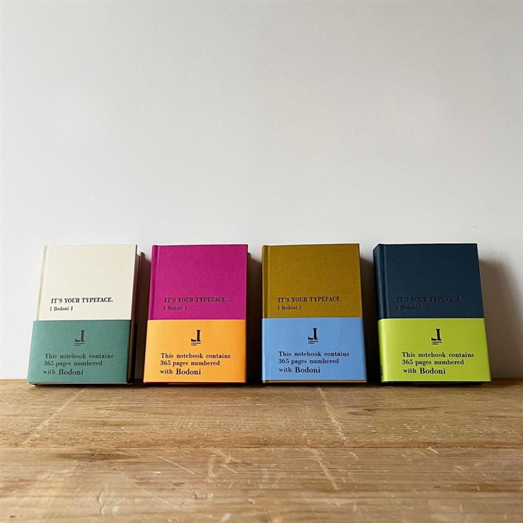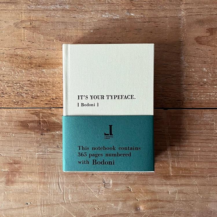 タイポグラファGiambattista Bodoni(ジャンバッティスタ・ボドニ)が19世紀末に制作した、モダン・ローマンを代表するイタリアの書体でデザインしたハードカバーノートです。