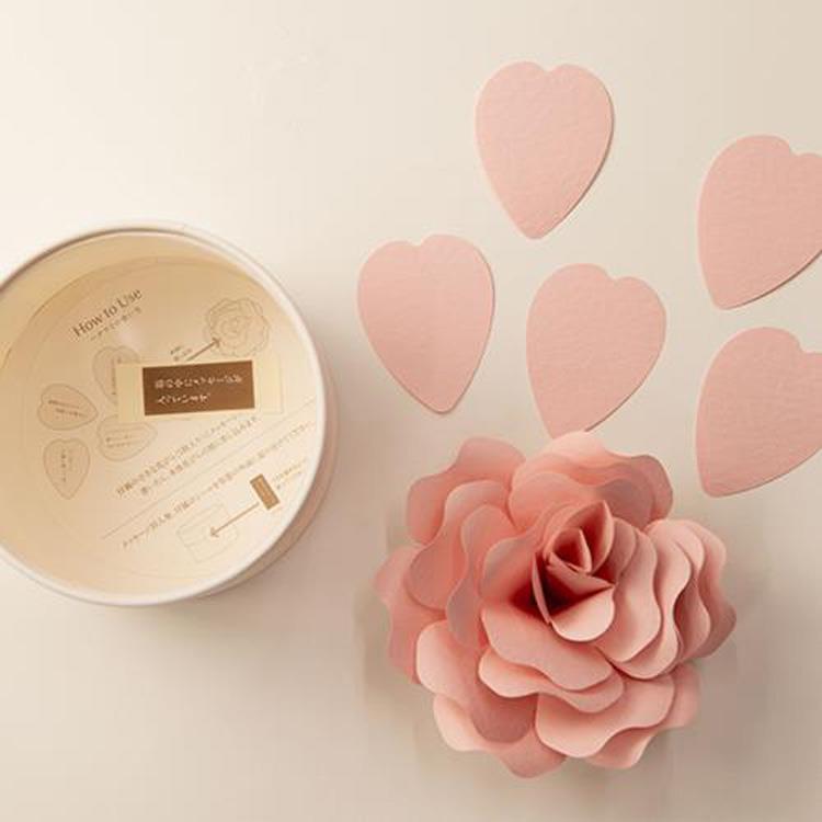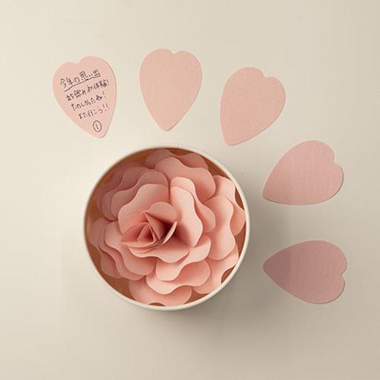 花びらの形を模したメッセージカードを便箋がわりにして、紙でつくられた花の中に紛れ込ませるだけ。
