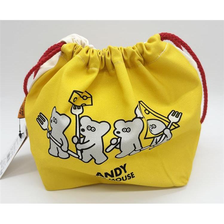 両面違う柄が楽しい、POPなイエローが目を惹くランチ巾着です。