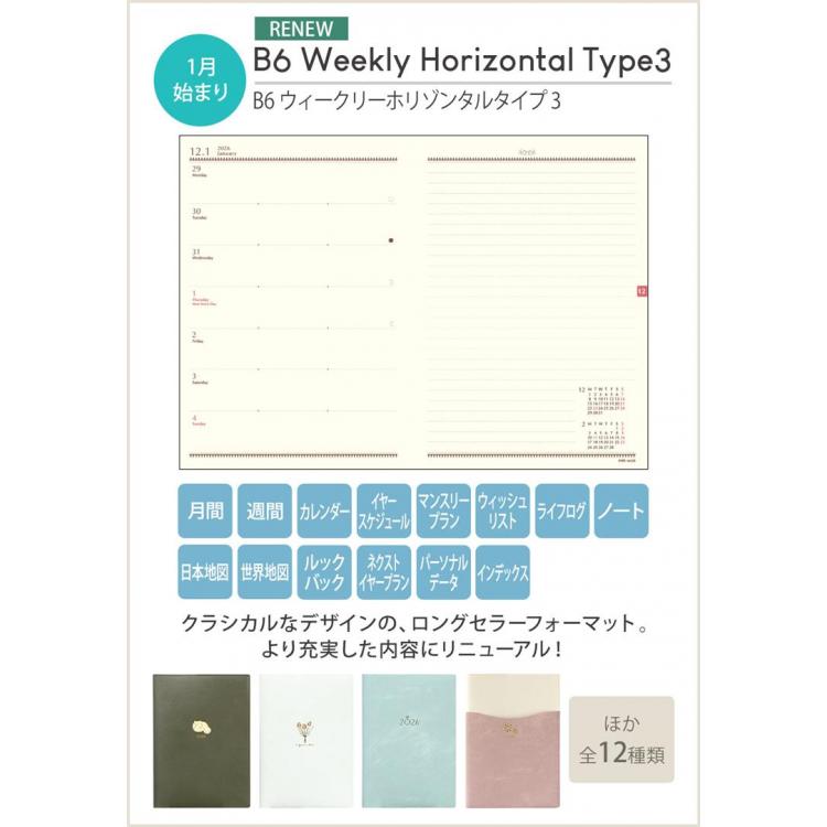 クラシカルなロングセラーフォーマット「ウィークリーホリゾンタル Type3」ダイアリー。