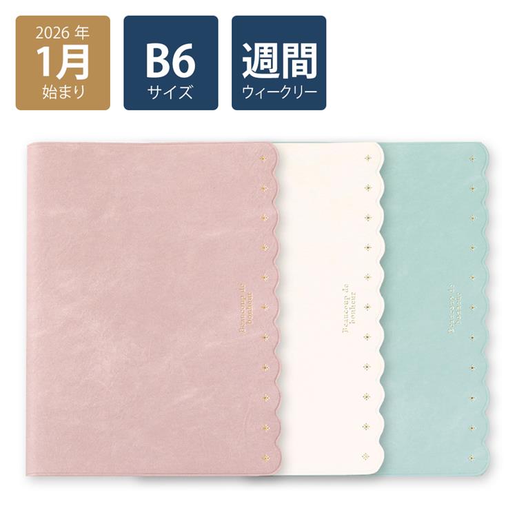 - 2026年1月始まり手帳 週間ブロック B6 フリル ピンク