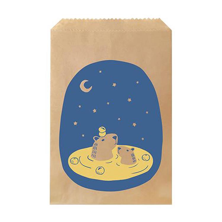 柚子風呂に浸かるカピバラの親子がほのぼのと描かれたクラフトフラットバッグです。