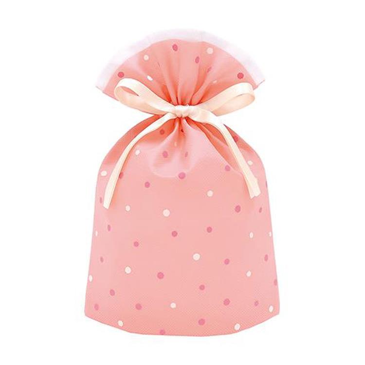 ピンクを基調とした大小のドット柄がかわいいギフトバッグです。