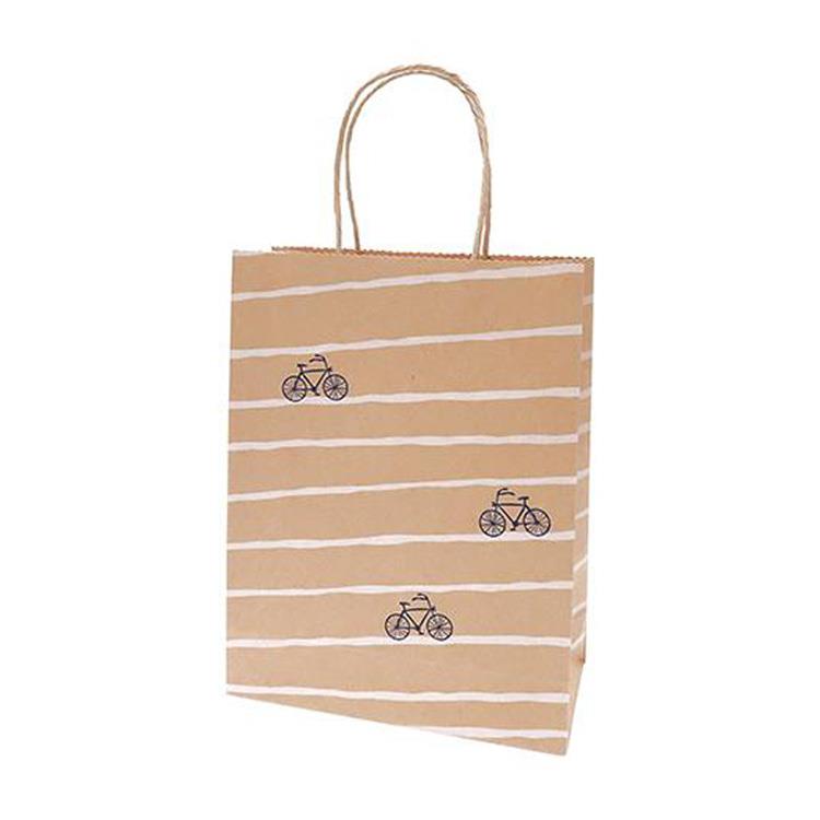 ストライプ柄の上を自転車が走る、軽やかな雰囲気のクラフトキャリーバッグです。