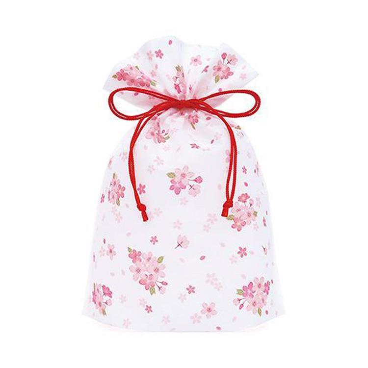 小さな桜模様を全体にあしらった、春の贈り物に使いやすい巾着袋です。