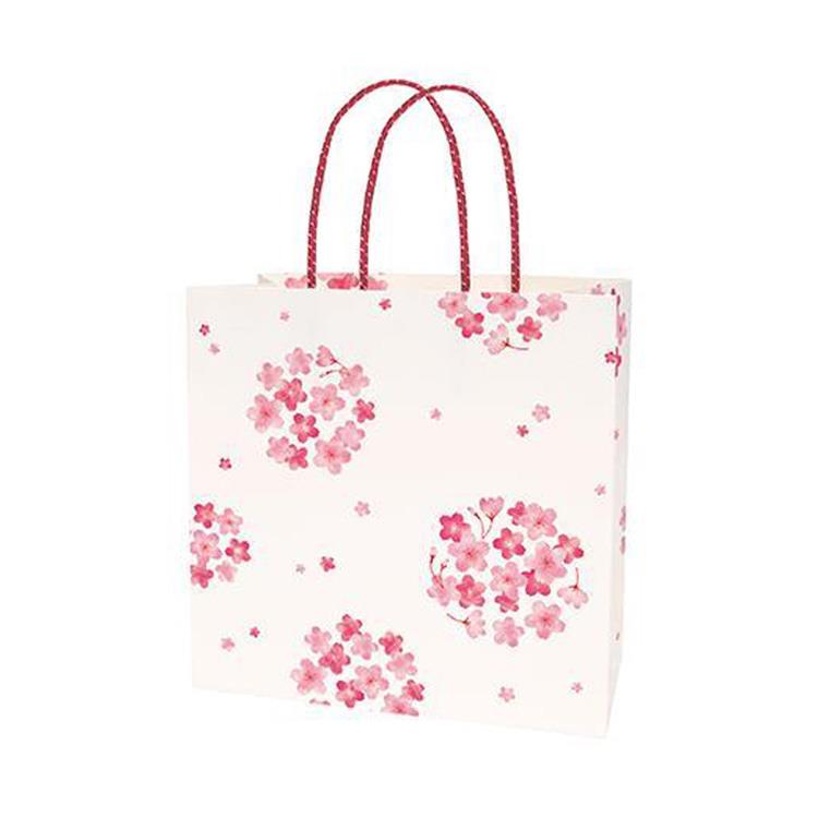 丸みのあるコロンとした桜をモチーフにあしらった、春柄手提げ袋です。