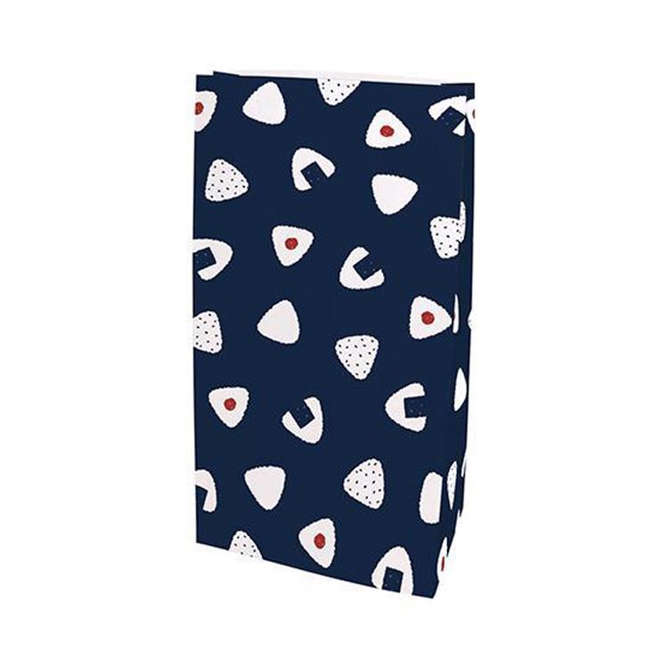 ころんとしたおむすび柄をあしらった、Mサイズの角底袋です。