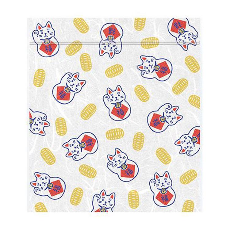 招き猫と小判をあしらった縁起のよいデザインが魅力の、和柄ジッパーバッグです。