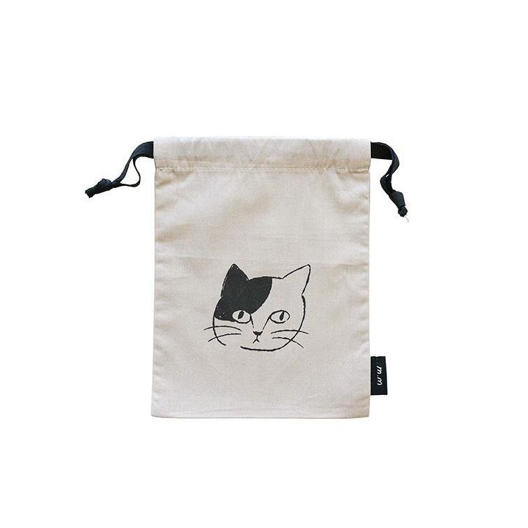 松尾ミユキさんの描く線画の猫をポイントにした巾着。