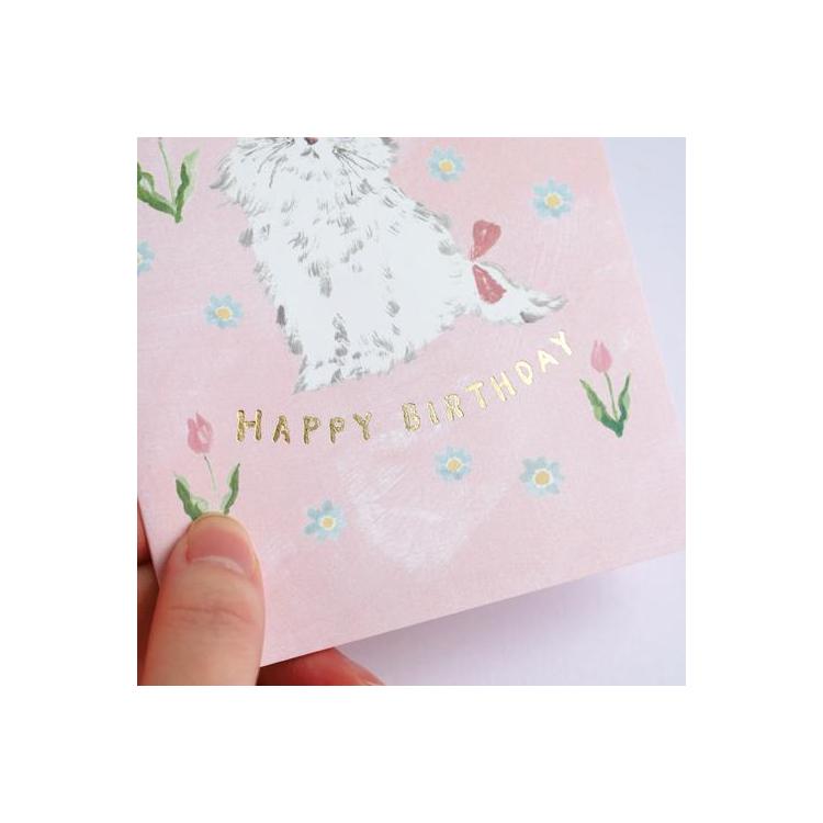 表紙に金箔押し、封筒にもイラストを施したお誕生日カード。