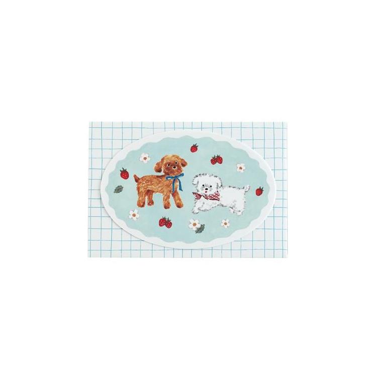 チャーミングなリボンでお洒落した動物たちが草花に包まれて、ゆったりと心地よさそうにしています。