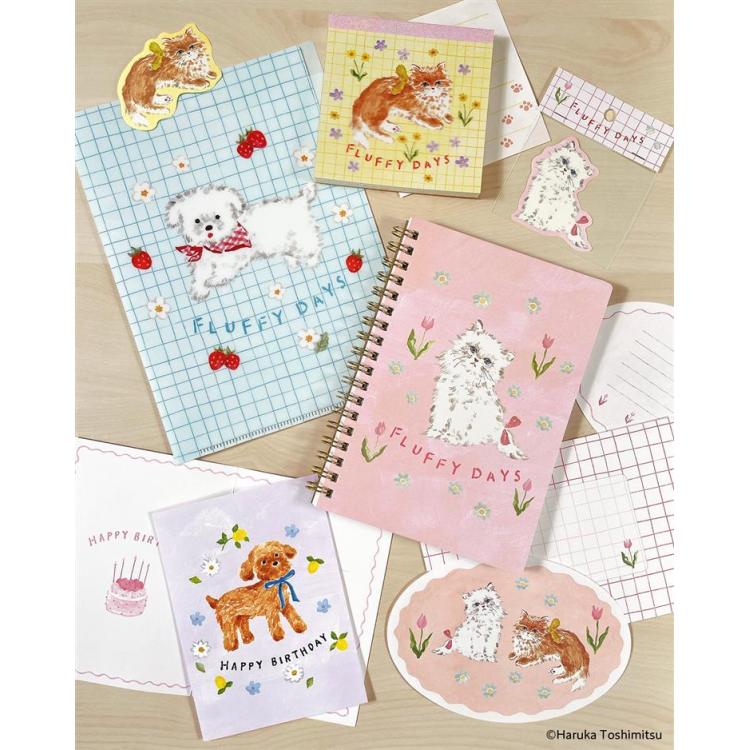 イラストレーター利光春華さんが描く、ふわふわと愛らしい動物たちと色とりどりの花々の雑貨ステーショナリーシリーズ「FLUFFY DAYS」。