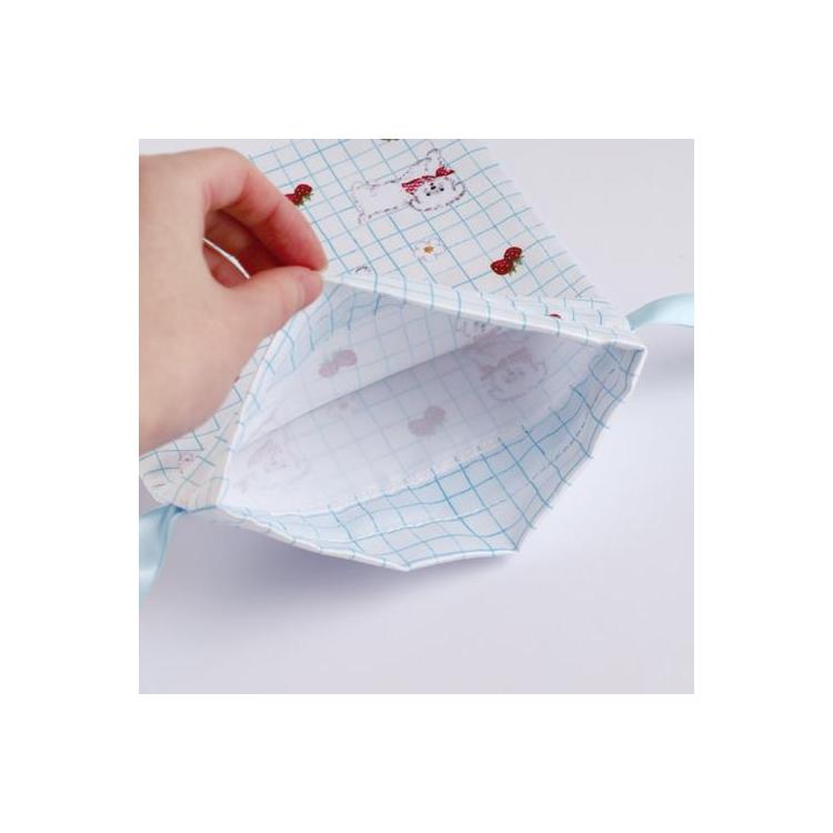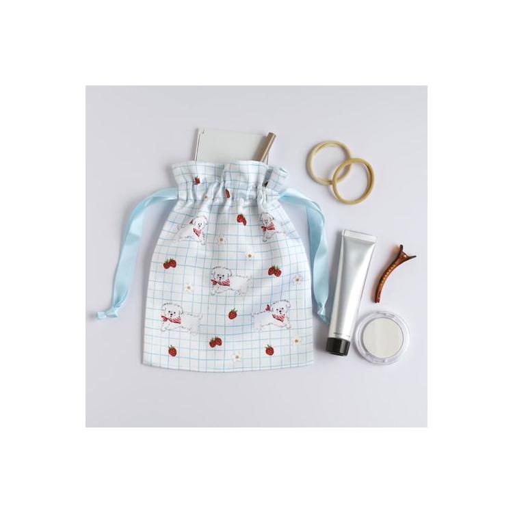 コスメやモバイルバッテリーなど、バラバラしがちな小物整理に便利な巾着袋。