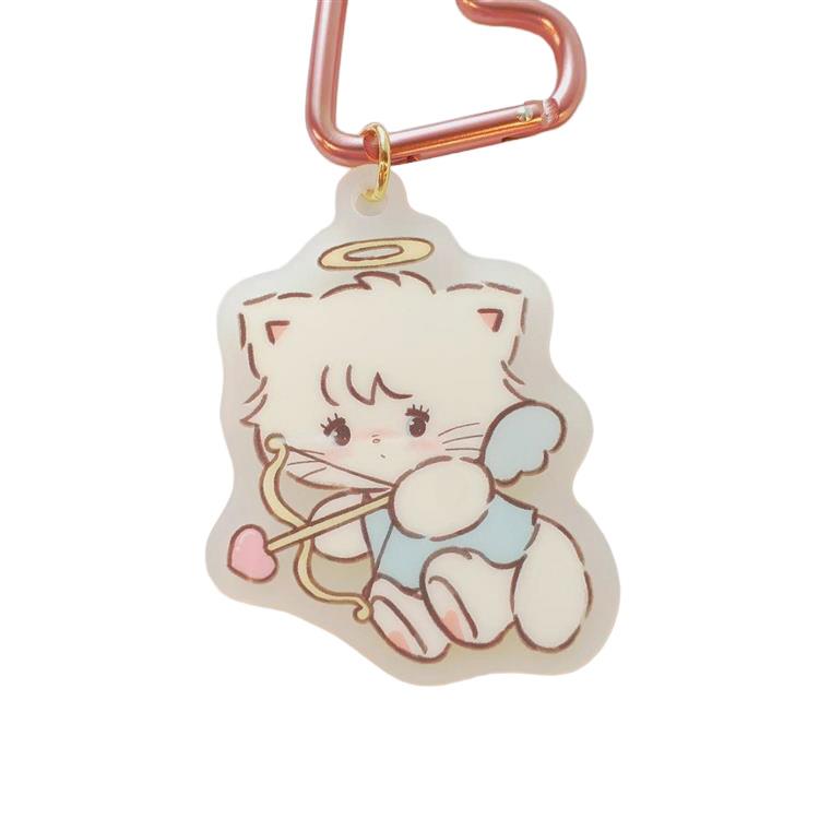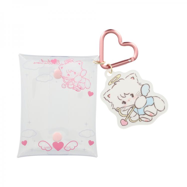 子ねこの『ムース』のイラストがプリントされたポーチにアクリルチャームが付いた可愛いデザインとなっています。