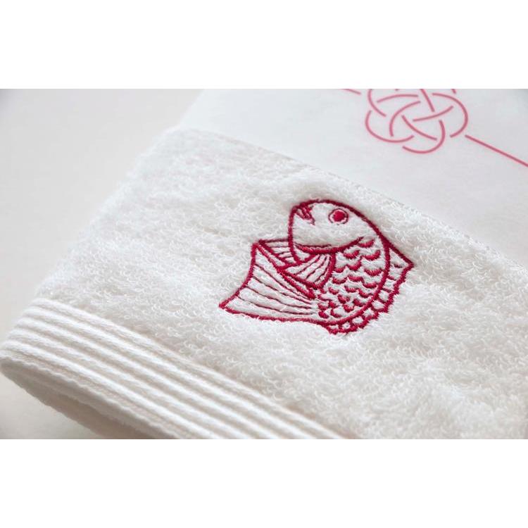 やわらかさ、軽やかさ、そして吸水性の良い今治タオルに、おめでたい刺繍を施しました。
